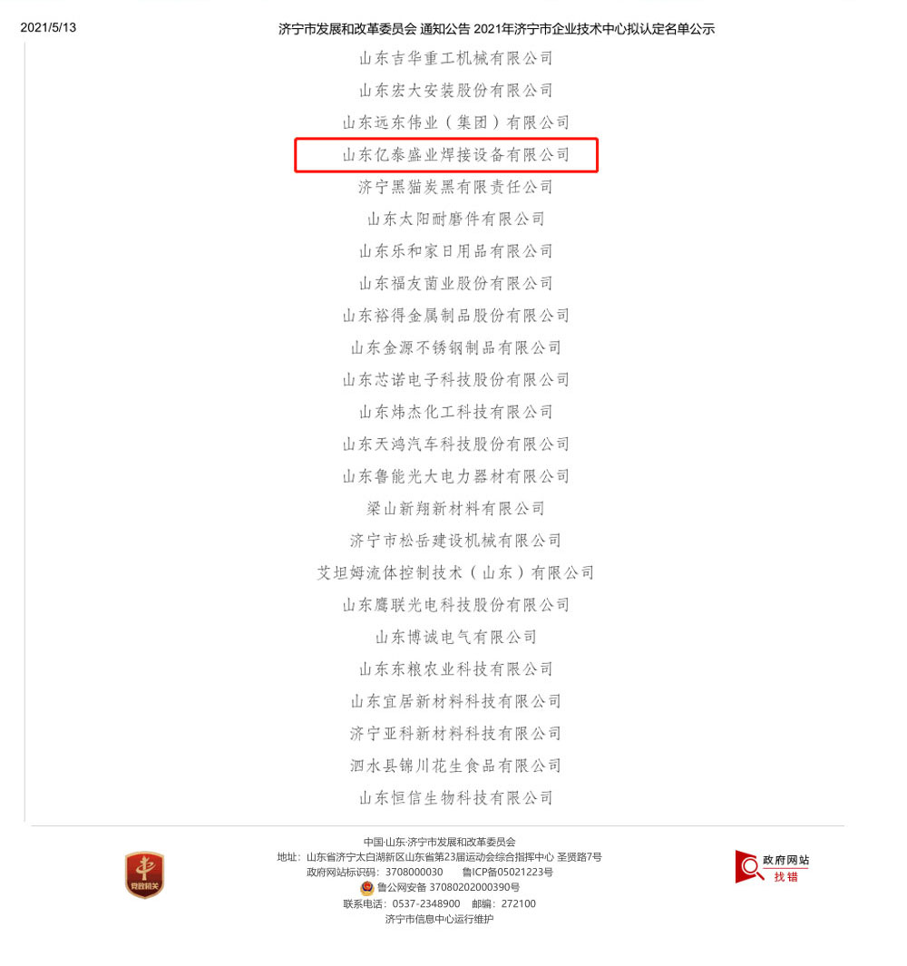 2021年濟寧市企業(yè)技術中心擬認定名單公示